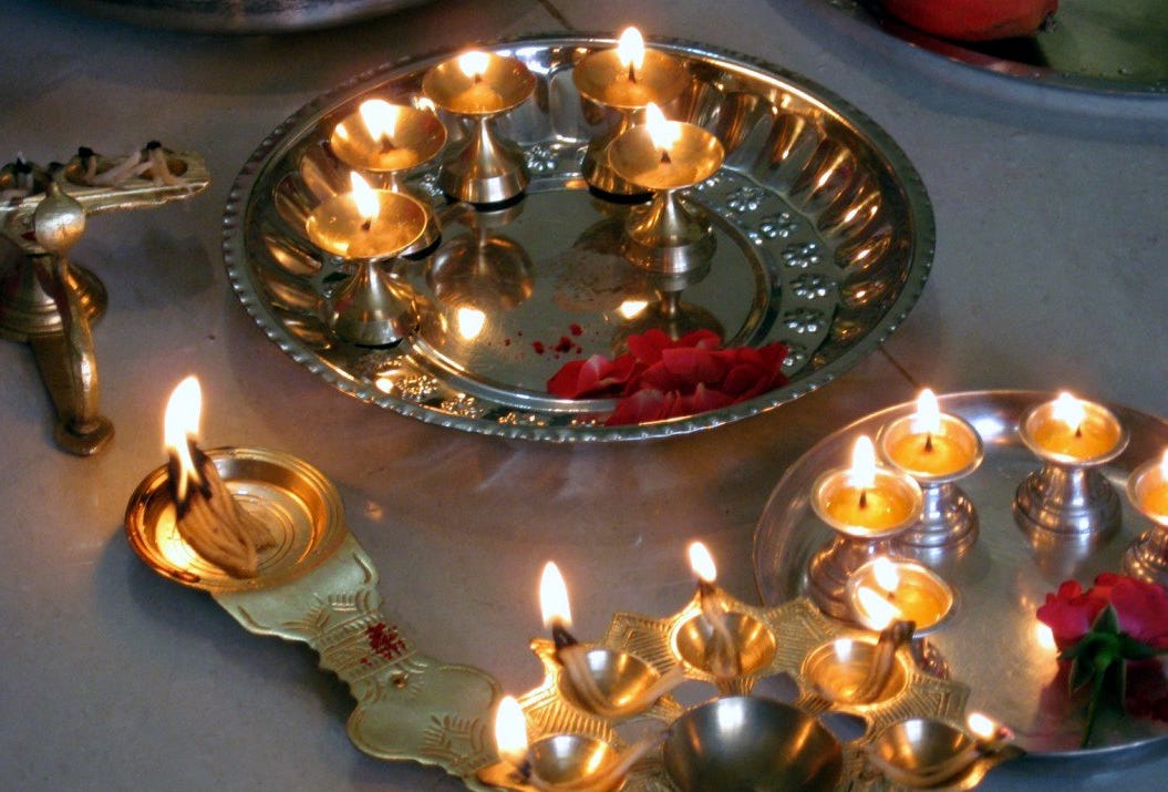 Temple ritual was new to me. I'd not experienced anything remotely close to an ārati in my life, but I found it fascinating and was eager to participate. Not trained at the time, I was limited to simple tasks such as taking the ārati lamp around for devotees to honour. An ārati lamp is generally a brass or silver vessel that supports several enflamed handmade ghee candles. I've included a picture for reference. The task was to take the lamp from the pūjārī (priest) who is performing the ritual and then go around the temple room holding it out in front of devotees so that they could honour it. Some devotees wave their hand over the flames then touch that to their foreheads, some bow their heads to the lamp in a show of respect. If a devotee's hands are occupied by playing karatāla cymbals or mṛdaṅga drum, they generally nod their head in respect. Such was the case with Bhakta Sasha from Russia. He was playing karatāla when I approached him, so he nodded towards the flaming lamp.